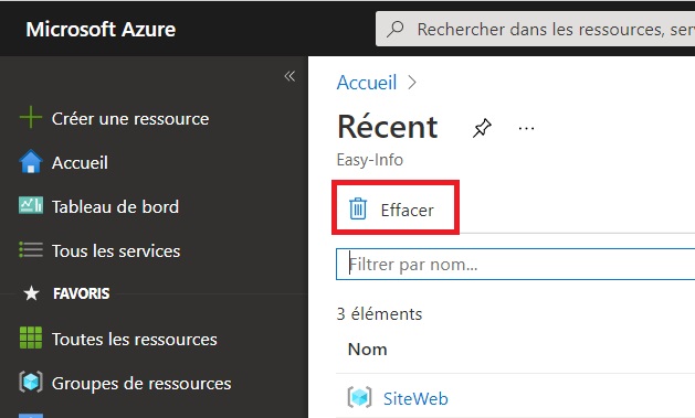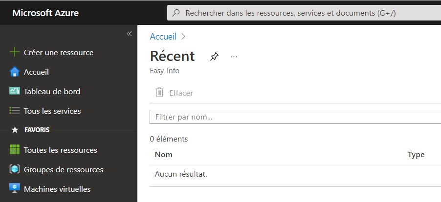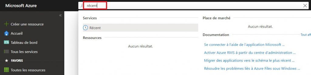 1 | Dans la barre de recherche dans « Azure » , tapez simplement le mot « récent » et « validez »